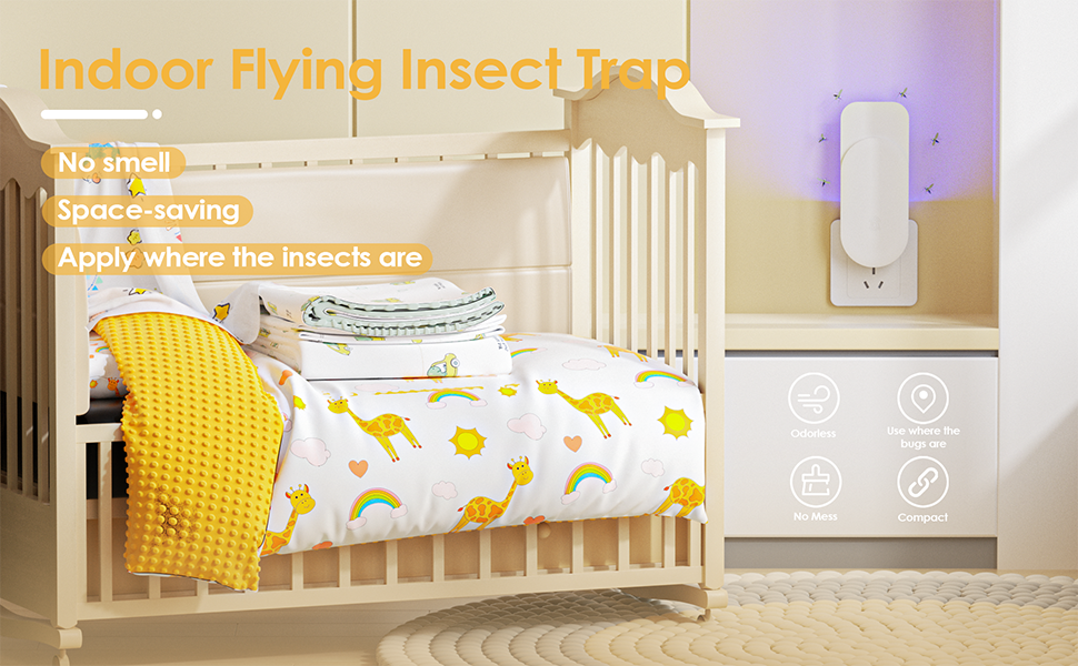 With two LED beads, this Flying Insect Trap offers smart and night light modes for versatile use. The device automatically detects ambient light levels in smart mode, while the night mode provides continuous illumination. Ideal for keeping your room insect-free and well-lit during nighttime hours.